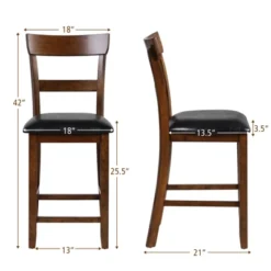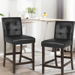 Tangkula Set Of 2 Bar Stools Counter Height Pub Chairs W/ PU Leather Seat&Rubber Wood Legs