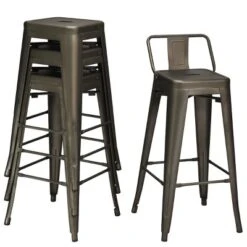 Tangkula Set Of 4 Metal Bar Stools 30″ Industrial Height Chair Low Back
