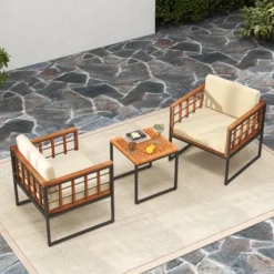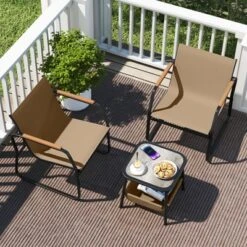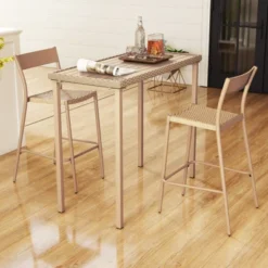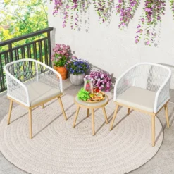 Tangkula 3 PCS Patio Rocking Bistro Set Outside Wicker Rockers W/ 2-Tier Tempered Glass Coffee Table