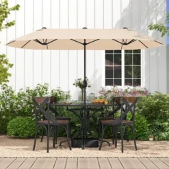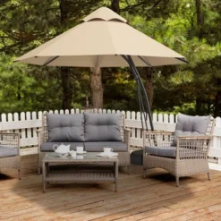 Tangkula 10 FT Patio Offset Hanging Market Umbrella Cantilever Outdoor Umbrella W/Crank & Cross Base