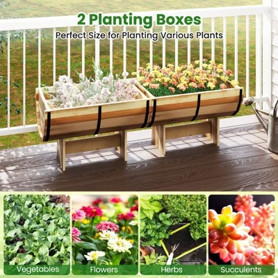 - 2 Planting Boxes: Featuring a set of 2 wooden planter boxes, this set is perfect for diversifying your gardening. Each half barrel planter measures 18″ x 12″ x 11.5″(L x W x H) of 0.7 Gal/2.7 L and can support up to 55 lbs. The wooden barrel’s base is reinforced with wooden slats to prevent sagging, increasing the stability of your barrel planters outdoor.
