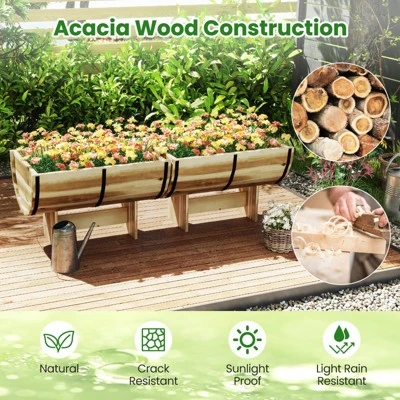 - Acacia Wood Construction: Crafted from premium acacia wood, our set of 3 wooden flower boxes are crack resistant, sunlight proof, and light rain resistant for your outdoor spaces. With enhanced metal bands, these planters emulate a stylish whiskey barrel look, perfect for any garden setting.