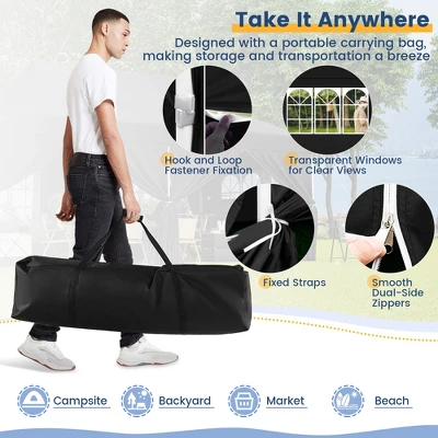 - 6 Detachable Sidewalls: The outdoor instant gazebo features 6 detachable sidewalls that are easily attached by hook and loop fasteners, including 2 zippered sidewalls and 4 sidewalls with transparent windows. Whether you need privacy, protection from wind, or simply want to transform the canopy into a cozy shelter, these sidewalls provide the flexibility you need.