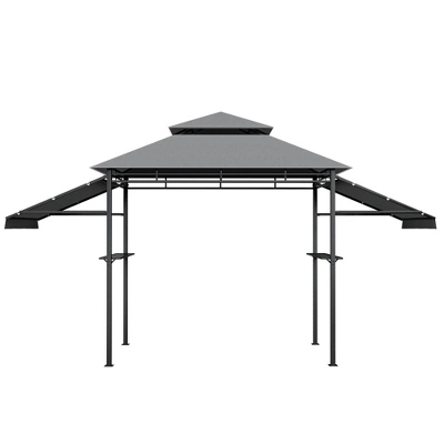 Our Grill Gazebo Would Give You a More Comfortable BBQ Experience at Home!The 13.5 x 4 ft gazebo with 7 x 3.5 ft footprints provides a large space to accommodate grills and expand the outdoor cooking space,which is the ideal choice for outdoor BBQ,picnics,and parties. Specifically,this grill gazebo comes with 2 side awnings,which can be easily adjusted in different positions,providing extra shade for enjoying delicious food. Moreover,it adopts a double-tiered soft-top canopy for good ventilation,and some of the fumes can also be released from the top. Besides,the canopy is made of fire-retardant fabric for safer use.
