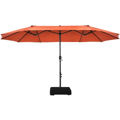 - Rugged Umbrella Base Included: This double-sided patio umbrella comes with a long-lasting umbrella base, so you do not need to buy it separately. In addition, this umbrella stand includes a metal frame and two sandbags (sand not included), which is easy to assemble with clear instruction. Moreover, each sand bag can be filling with 110 lbs sand to keep the umbrella stable.