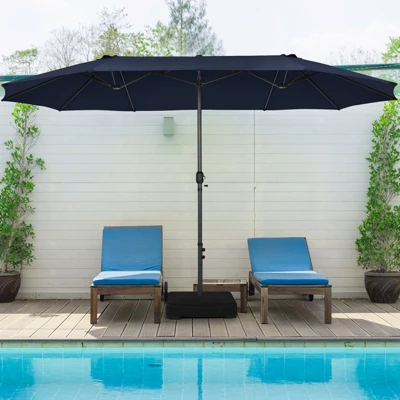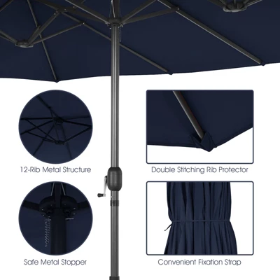 - Double Sided Design for Larger Shaded Area: This patio umbrella is characterized by its 15ft double-sized canopy, which provides extra-large shading coverage for your whole family and friends. So you can put a furniture set under the umbrella to relax and enjoy breeze during leisure time.