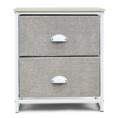 Topbuy 2-layer chest of drawers can help you organize stuffs and make your rooms tidy. The smooth rolling storage unit has two spacious drawers to hold clothes, tools, or anything else you need tucked away. A hard MDF top has a good load capacity of 66 lbs. It can be used as a night-stand or am end table. Powder coated steel frame makes it stand firm and can last for long time.