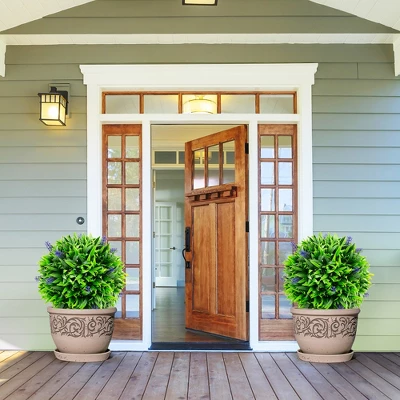Elevate the aesthetic appeal of your surroundings with our faux decorative balls.The faux decorative balls come with lush gradient green leaves, creating a more attractive appearance. Unlike others without flowers, ours features realistic lavender flowers, infusing a burst of color that instantly enlivens any room or outdoor area. Crafted with sun-proof and smell-free PE material, the faux green ball plant ensures long-lasting performance. Whether displayed indoors as part of your interior decor or placed in an outdoor garden, these faux garden spheres retain their pristine appearance without the need for any maintenance. You can hang them to create a whimsical look or place them on the floor for a grounded touch.