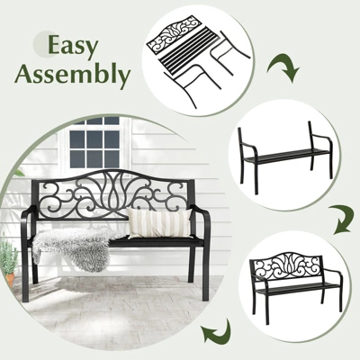 - Robust Metal Construction: Built from a fusion of spray metal and cast metal, the garden bench is the epitome of durability. Moreover, it handles up to 660 lbs, withstands the demands of daily use, and offers a long-lasting addition to your outdoor space.