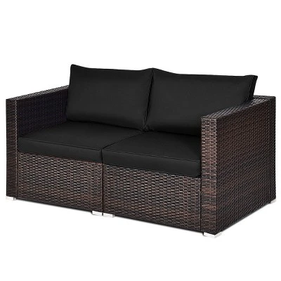 Tangkula 2-Piece Patio Wicker Corner Sofa Set Rattan Loveseat With Removable Cushions