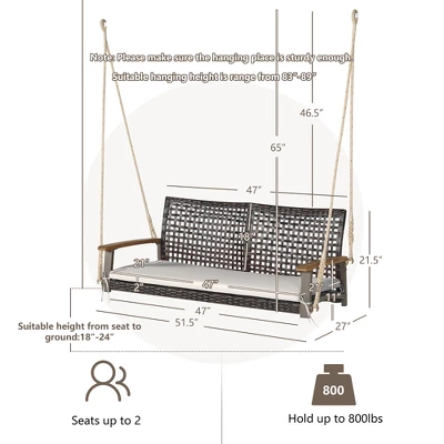 Tangkula 2-Seat Rattan Porch Swing Chair Outdoor Wicker Swing Bench W/ Seat Cushion