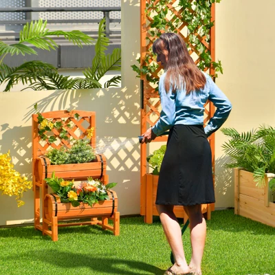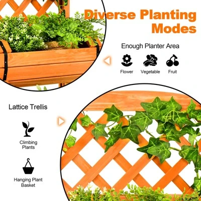 - Double Tire Flower Box: Consists of huge planter area and a lattice trellis, this raised garden bed offers planter diverse planting modes for both common plant and climbing plants such as flower, fruit, vegetable. You can also hanging plant baskets or other decorations to add variety to the planter.