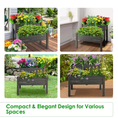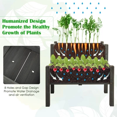 Our raised garden bed can be a great complement to your patio, backyard or balcony! This garden bed is made of natural fir wood, which is known for its strength as well as its natural resistance to rot and pests. Together with sturdy construction, this raised planter bed is stable and long-lasting for long-term use. With 2 tiers structure, this garden bed provides spacious planting areas for different plants such as flowers, vegetables and so on. The user-friendly height can help you take care of the plant easily. Designed with drainage holes, the garden bed allows plants to absorb adequate water and protects them from damping off. What’s more, the assembly is easy to complete with clear instruction.