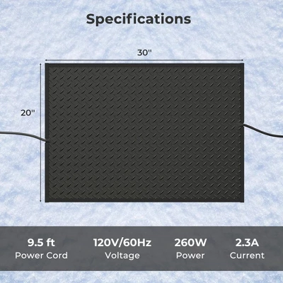 - Perfect Size for Versatility: Whether you fit it snugly by your doorstep, align it along walkways, or place multiple mats side by side for broader driveways, this 20” x 30” heat mat offers the flexibility to meet your specific snow-melting needs.