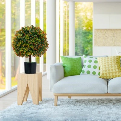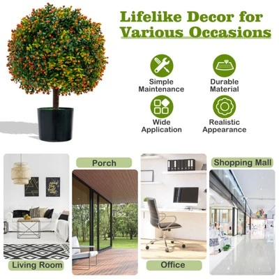 - Realistic & Vivid Design: Designed with orange mini fruits and luxuriant leaves for vitality, the 2 pack artificial boxwood topiary tree will make you feel close to nature. Besides, it comes simulated trunk and grass to show vibrancy in your living room, office, balcony, etc.