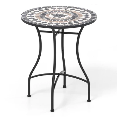 Tangkula 24″ Bistro Table W/ Ceramic Tile Tabletop Heavy-Duty Metal Structure Patio