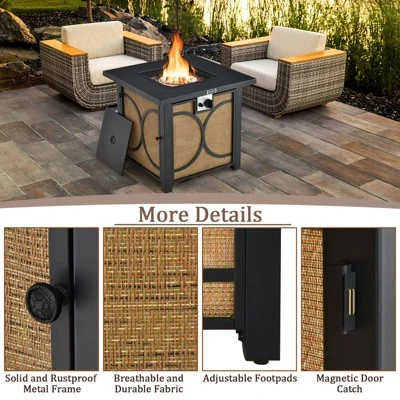 - High-Strength Structure: Made of solid and rustproof metal frame, and breathable and long-lasting fabric, the fire table can be used for a long-time. And the adjustable footpads make the fire table stand stably. Moreover, the tank seat will firmly fix the 20 lbs gas tank (not included) in place.