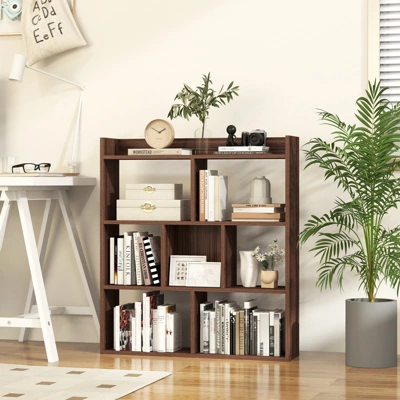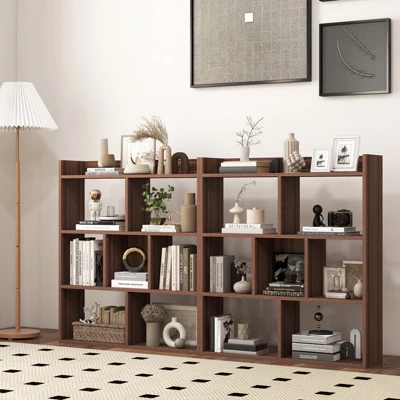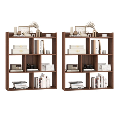 Tangkula 2pcs 7 Cubes Open-back Bookshelf Home Storage Display Shelf Horizontal Wooden Bookcase Free-standing Storage Unit With Anti-Toppling Devices Floor Organizer Rack For Bedroom Study Living Room Walnut / White