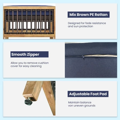 Material: PE Rattan, Metal, Acacia Wood, Polyester, Sponge