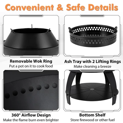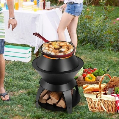 - 3-in-1 Versatile Fire Pit: Equipped with a pot holder on the top, the burning pit is perfect as a camp stove to meet your cooking demands. And when the pot holder is removed, you can use it as a camp fire pit or BBQ grill (grill not included) for more warmth and joy.