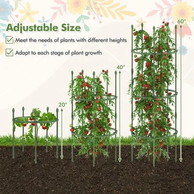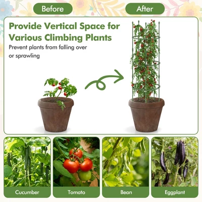 - 2-in-1 Versatile Use: The garden tomato cage can protect your plants from sprawling out, leading to better growth and overall health. On the other hand, it can serve as a plant support trellis, allowing various climbing vegetable, vines, flowers to grow upward and enjoy full sunlight exposure.