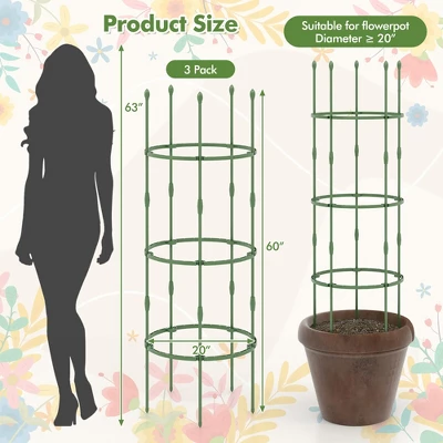 - Upgraded Material for Durability: Made of PE-coated metal poles, the 3 pack garden trellises are rustproof and sturdy. Moreover, these poles are not easily susceptible to burning plants with cooler surface. And the thick supporting rings offer reliable stability, allowing your plants to grow with confidence.