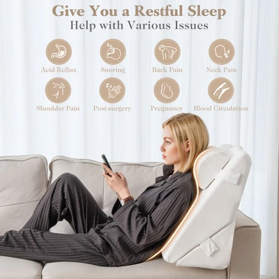- Multiple Positions Available: Versatile and adjustable, the wedge pillow set can be used in a variety of ways. Use it to elevate your head, back, arm or legs, providing optimal support to help with various issues, such as acid reflux, snoring, or post-surgery recovery.