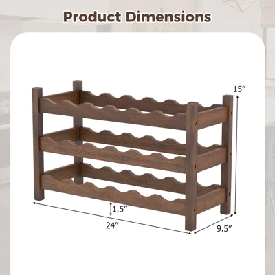 Elevate your drinks collection with our bamboo drinks rack!Made from natural bamboo, this 3-tier drinks rack effortlessly combines durability and elegance. The large capacity of up to 18 bottles makes it a must-have for drinks enthusiasts looking to showcase their collection in style. The clever wave slot design securely cradles each bottle to prevent wobbling, while the tilted design ensures the optimal angle for flavor preservation. Featuring reinforced connections and anti-slip foot pads, this tabletop drinks organizer offers excellent stability. Both functional and visually appealing, this drinks storage shelf is ideal for various occasions, from housewarming parties to family gatherings.