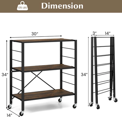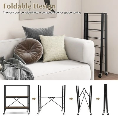 Are you in need of extra storage space and a solution to avoid a messy environment? Our 3-tier folding shelving unit is the perfect option for you. Its convenient folding design allows for easy expansion or folding as needed. Once unfolded, it provides 3 storage shelves to accommodate a variety of sundries. Additionally, all shelves can be assembled in 7 different positions, allowing for customizable storage based on your needs. If you require more vertical storage space, simply detach several shelves. Our storage shelf is equipped with 4 movable wheels, making it easy to transport items from one place to another. Out of these , 2 are lockable, ensuring the rack stays in place. Most importantly, this shelf Comes with anti-toppling device to maximize steadiness and security.
