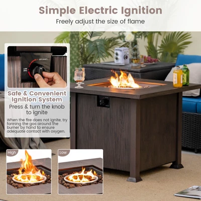 - Start the Fire with Ease: This fire pit table with 50,000 BTU heat output and stainless steel burner is well-heated. Plus, the simple ignition system allows you to set the flame size to low or high as needed. Requires a 20 lbs propane gas tank (not included).