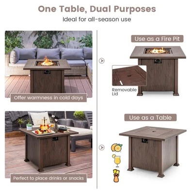 - 2-in-1 Propane Fire Pit Table: Placing the propane fire table in the backyard to enjoy the cozy warmth at night or use it as an outdoor coffee table according to your different needs. Moreover, the spacious tabletop offers ample space for food, drinks or books when the lid is covered.