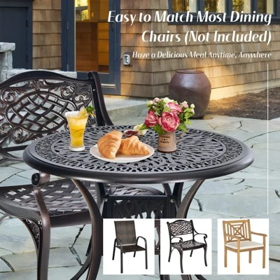 Tangkula 36″ Outdoor Dining Table Round Cast Aluminum Patio Dining Table With Umbrella Hole And Adjustable Non-Slip Foot Pads