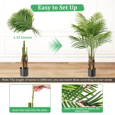 This artificial palm leaf tree is the perfect addition to any space, bringing a touch of nature feeling to your living space. Crafted with premium PEVA leaves, it features fade-resistant and tear-resistant foliage that maintains vibrant colors and lifelike textures, ensuring a long-lasting and authentic appearance. Additionally, this artificial tree boasts 12 large lifelike leaves and simulated trunks with realistic moss, adding an authentic touch. The sturdy cement-filled pot provides stability, preventing the tree from being easily knocked over. This faux tree is easy to set up, simply insert the tube into the stem and adjust the leaves to your desired shape.