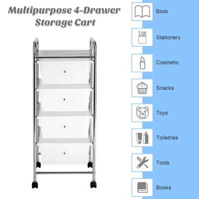 - 【4 Drawers for Storing】This storage cart, designed with 4 drawers will provide you with ample space for storing and organizing. Plus, with metal knobs on each drawer, our storage cart will create no hassle as the drawers are being moved and reorganized.