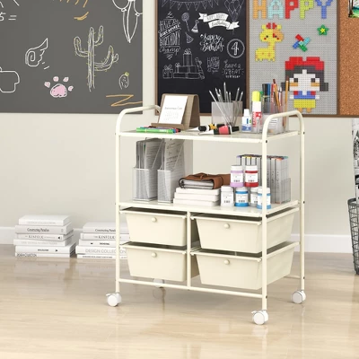 This is our high quality 4 drawer rolling storage cart, which includes 4 big drawers and 2 shelves. Be made of Chrome Steel Framed and plastic Drawer Organizer, this 4 drawer 2 shelves rolling cart is sturdy and serve you for a long time. Four universal wheels will help you move it easily. It is ideal for getting your work and life space easily in your office, home, school, garage or just about anywhere organization is needed. Come and buy one now!