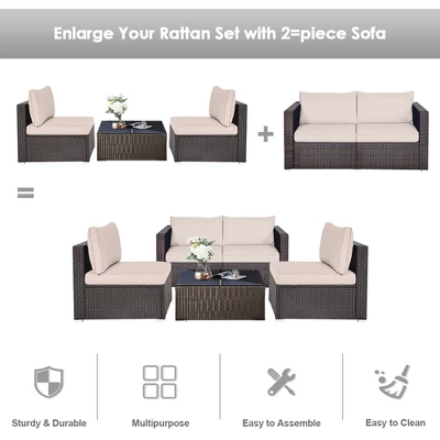 - Versatile Sofa Set: Designed with concise and modern style, two corner sofas are great to be used separately or as complement for multi-piece wicker furniture. It is suitable to be placed in your garden, patio, balcony, backyard and lawn.