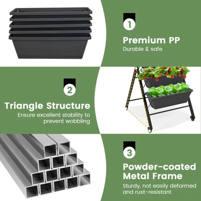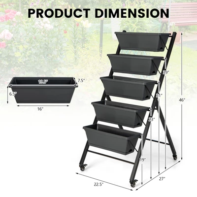 - Sufficient Planting Space: The elevated planter is designed with 5 large container boxes, providing large space for cultivating various plants, such as fruits, herbs, vegetables, flowers, etc. Furthermore, the 5 layers adopt a vertical design, so it would not shade the growth of the lower-layer plants.