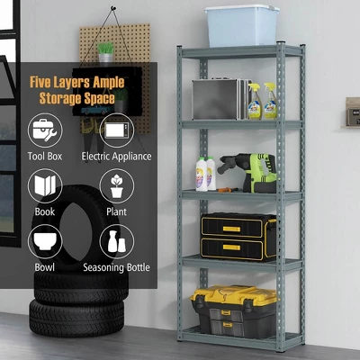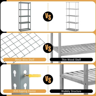 - Premium Material: Crafted from high-quality powder coated metal, our 5-tier storage shelf guarantees durability and reliability for long-term use. Additionally, the powder-coated surface not only adds resistant to water and rust but also extend the lifespan of the standing shelf unit.