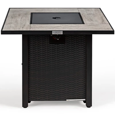 - 【 IMITATION RATTAN & CERAMIC TILE TABLE 】 The stereoscopic edge of the simulation rattan stripes and the unique tile style table-top add patio fire table excellent visual aesthetics. Functionality is complemented by elegant style. With attractive appearance & sturdy structure, fire pit table outdoor compliments any outdoor space.