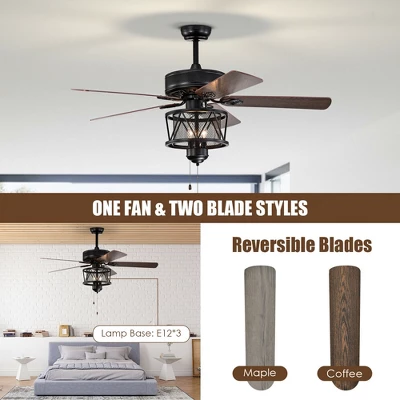 Our 50″ ceiling fan with lights combines lighting, decoration and fan function, which is a perfect addition to your living space, such as the living room, bedroom, kitchen and more. This fan light features a reversible motor with quiet performance, and 2-way rotation will satisfy your different needs all year. Moreover, 3 adjustable speeds can be easily controlled by the pull chain. And the other chain is the light switch, which is easy to use. In addition, 5 smooth MDF blades with different colors on both sides can be used to match different carpet colors. With downrods of 5″ and 10″, you can assemble the ceiling fan in the suitable height depending on the height of the ceiling. Don’t miss it!