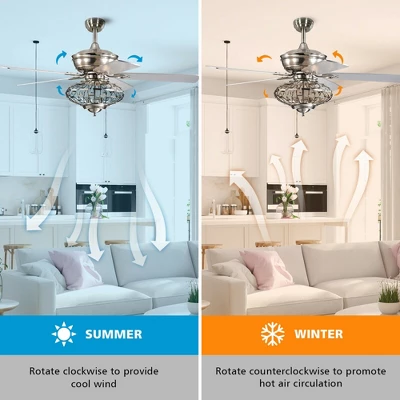 Add a sense of elegance and style to your living space with this 52″ ceiling fan lamp, which is suitable for the farmhouse, bedroom, living room, kitchen and more. The powerful motor with reversible function allows the ceiling fan to rotate clockwise or counterclockwise according to the season. Besides, timer function with convenient remote control offers humanized using experience. Moreover, a short 5″ down rod and longer 10″ down rod are included for different installation options. And you can complete the assembly easily with clear instruction and necessary hardware.