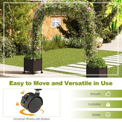 - Mobile Oasis on Wheels: Infuse dynamic beauty into your outdoor space with the mobility of the arbor trellis. Fitted with 8 universal wheels, including 4 lockable, you have the freedom to move your flourishing arboretum to the ideal location.