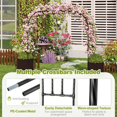 - Flexible Arch Trellis: The multiple crossbars included come with PE coating to protect your plants from being scalded, while extending the overall service life. In addition, they are designed to be removable, providing a flexible space arrangement solution for your cucumber, grape vine, and climbing rose.
