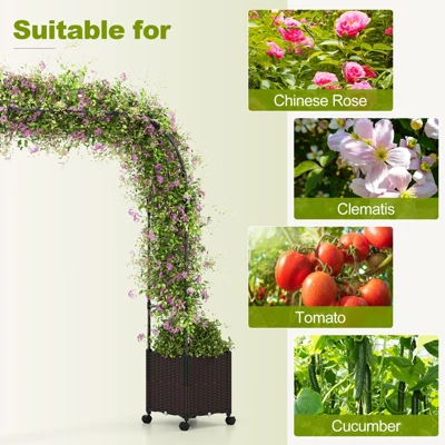 Enhance your gardening experience with the arbor trellis featuring removable crossbars coated in protective PE, ensuring scald resistance and rust resistance. In addition, they allow for easy adjustment to cater to a variety of plants like cucumber, grapevines, and climbing roses. Crafted from long-lasting PP material, the dual 3-height planter boxes boast a self-watering system with a water separation net and drainage holes for optimal plant care and growth. The arch arbor’s mobility is facilitated by 8 smooth and stable universal wheels, including 4 lockable ones, enabling you to effortlessly create a vibrant outdoor setting.