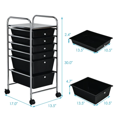 - 【6 Drawers Offering Sufficient Storage Space】: 6 drawer rolling storage cart includes 2 big drawers and 4 small drawers which provide ample space for you to store stuff by different categories.