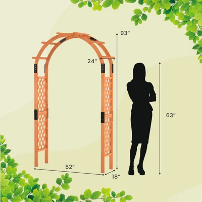 Elevate the Charm of Your Outdoor Space!Our garden arch wooden arbor measures 52″x 18″x 93″(L x W x H), which not only serves as a garden climbing pergola that allows for vertical growth, but also serves as an elegant backdrop for special occasions like weddings and anniversaries or simply as a unique entryway to your garden or yard. It includes an arched roof top and side trellises that can be adorned with climbing plants or embellished with balloons, decorative lights, or hanging baskets, creating a personalized touch. Crafted from premium fir wood and reinforced with metal connectors, this arbor offers a robust and reliable structure that is built to last.