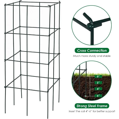 - 【Experience the Joy of Harvest】If you like to grow your own plants, especially tomatoes, it is necessary to have this 16″ square x 39″ H plant support cage, which is a good solution to protect the plants from being blown over by the wind or drooping due to heavy fruits.