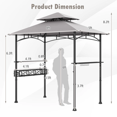 - Large Double-tiered Canopy: The 8 x 5 ft patio BBQ gazebo provides ample sunshade for delightful BBQ sessions or parties with your loved ones. More than that. the double-tiered canopy top will reduces heat accumulation. creating an enjoyable environment for you.