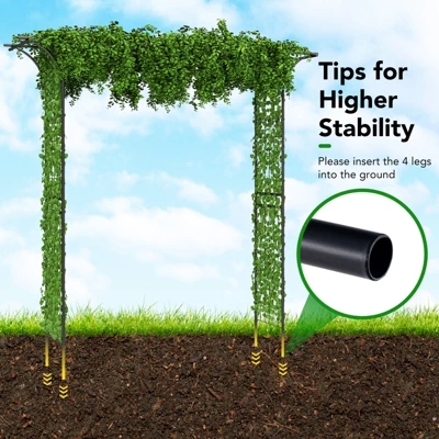 - Tips for Higher Stability: To prevent the garden trellis arbor from wobbling, please insert the 4 legs into the ground, which promises great stability in a gentle breeze. What’s more, extended edges on top can evenly distribute the weight for balance.