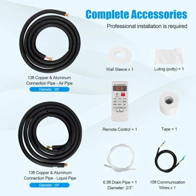 - Installation & Warranty: This split air conditioner and heater system includes a complete set of accessories and is warranted for 5 years on parts and 8 years on the compressor. Note: the installation of this product should be done only by a licensed electrician or a HVAC technician.